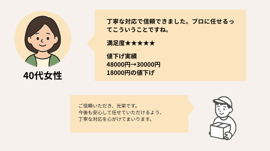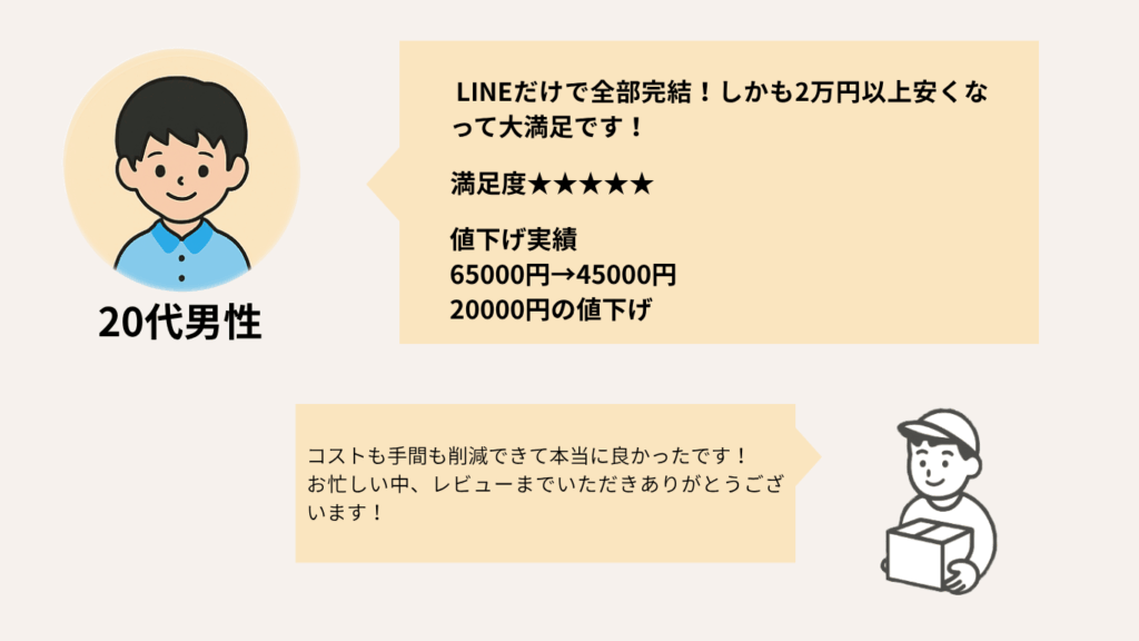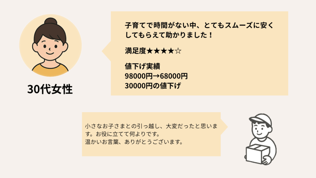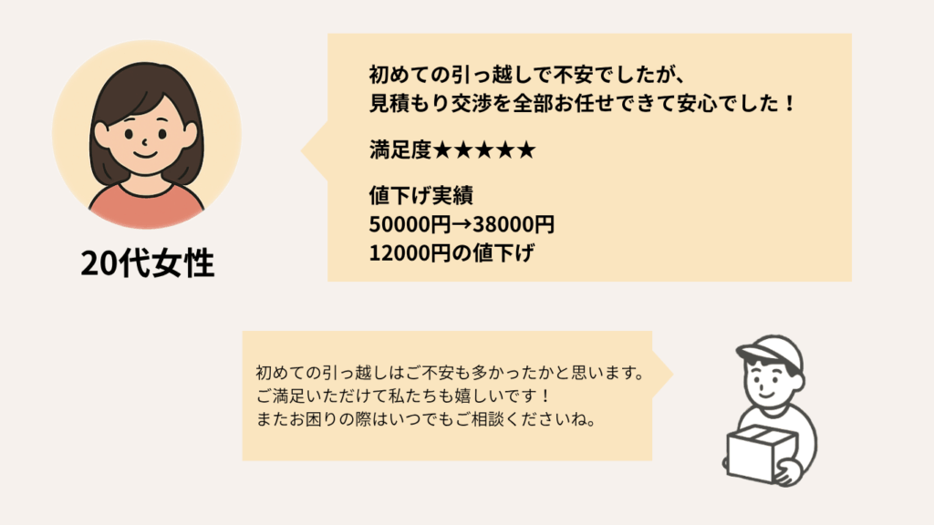 「引越し見積りさげるくん」では、実際にサービスをご利用いただいた皆さまからのご感想を大切にしております。